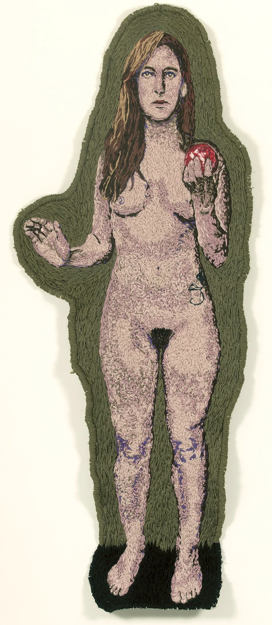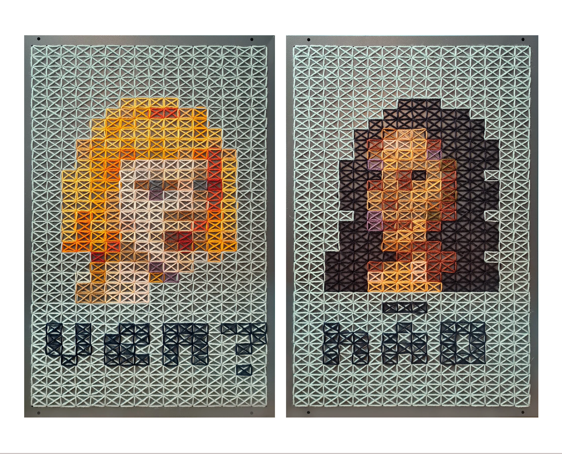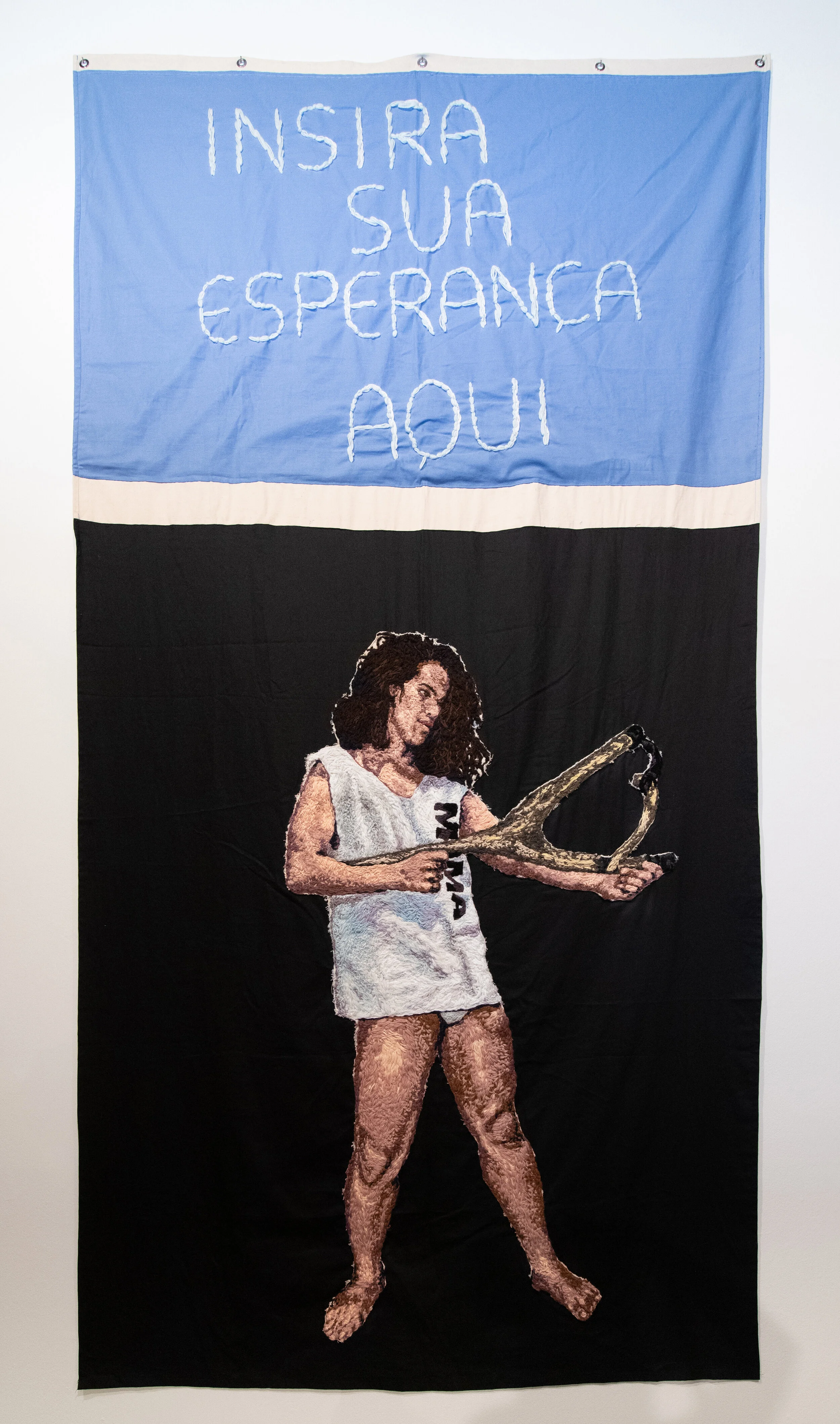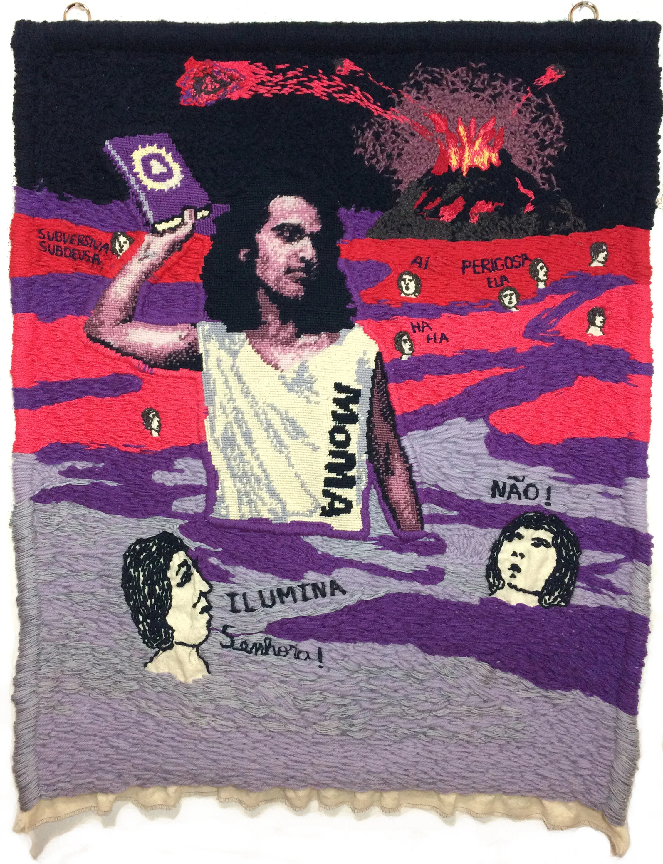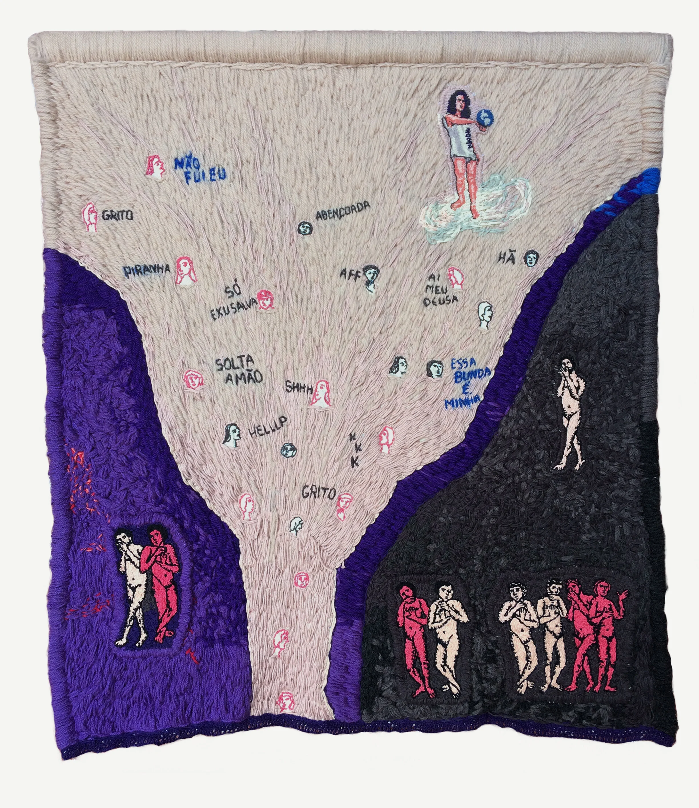 Angela Od is a Brazilian artist who was born in Rio de Janeiro and currently lives and works in São Paulo. With a multiple professional and artistic trajectory, her research focuses on embroidery as a narrative construction, in dialogue with elements of digital language, either through the lines or the pixel. Her contact with embroidery, crochet, and sewing began in her childhood at a philanthropic institution for girls in a boarding school which was strongly linked to a strict Catholic education, with hours of daily practice, and with her mother, a single Italian immigrant, who made crochet quilts to supplement her budget. In her practice, the artist transgresses embroidery as she was taught it, using threads and different supports - such as metal - in ways that do not correspond to the formal techniques that were part of her repertoire.