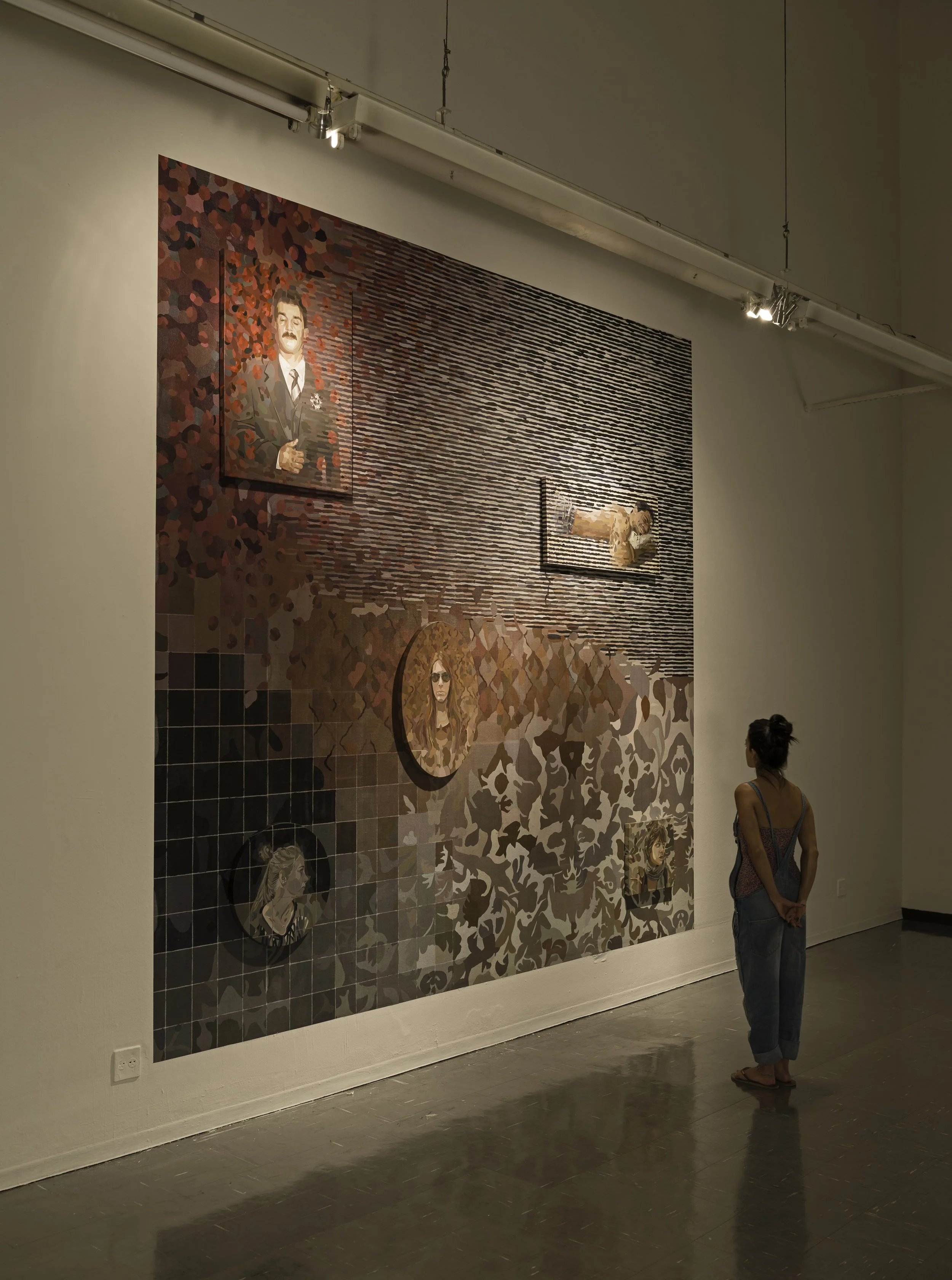 Para esta exposição, eu criei uma ficção através de uma instalação no interior da galeria, com pinturas sobre tela, pinturas espaciais e pinturas-objetos, a partir do encontro e investigação de um retrato de um casamento dos anos 70, de uma família libanesa imigrada para o Brasil que, aqui tornou-se burguesa e começou a adotar costumes decorativos europeus, que refletiam a sua nova classe social, assim como adotaram muitos dos mais "tradicionais burgueses brasileiros", desde aquela época e até os dias atuais. A exposição foi pensada com um pouco de ironia e humor, História mas, também, com o prazer de pintar e um tipo de "gosto".