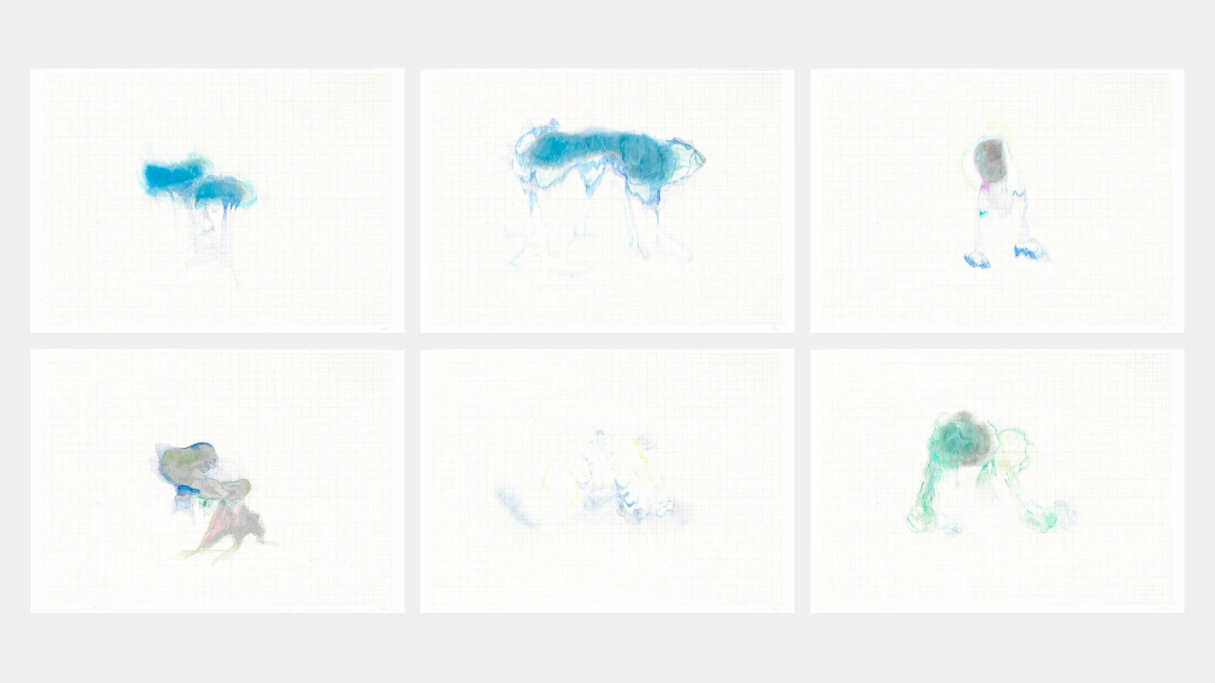Nas pinturas de Mika Takahashi (São Paulo, 1988) sobrepõem-se memórias, vivências e imagens, utilizadas pela artista para criar outros universos. "Acho que a memória também funciona um pouco assim, vai sobrepondo experiências para construir outra. Quando lembramos de coisas do passado, lembramos de uma forma diferente que outra pessoa lembrou, mesmo vivenciando a mesma coisa." Na série Epílogo, Takahashi parte das imagens de carcaças de baleias e constrói um ambiente ambíguo e onírico, que transita entre abstração e figuração.