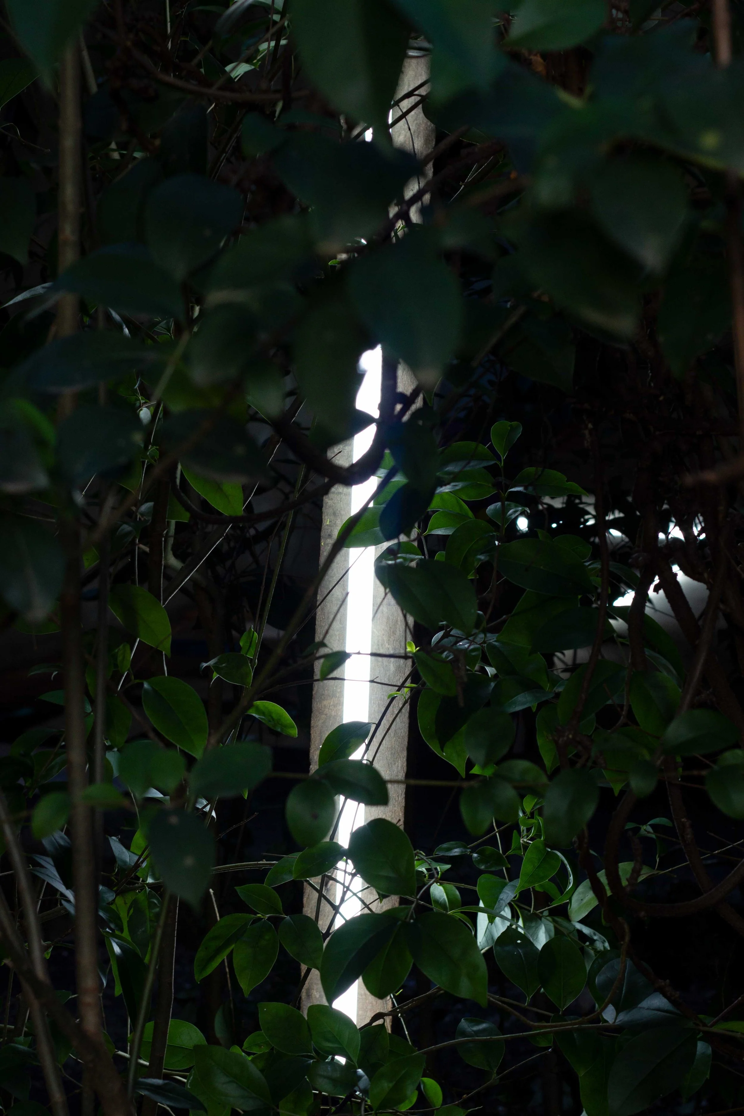 Em distintos pontos do espaço, instalam-se ainda os trabalhos da série Infiltrados, desenvolvidos pela artista desde 2016. Os elementos lineares, feitos de lâmpadas led tubulares que, como organismos vivos, se apropriam dos locais onde se inserem, criam circuitos que se infiltram na arquitetura e transpassam os limites entre público e privado. No contexto do galpão Fidalga 175, eles não só se infiltram pela arquitetura local, como também conduzem o visitante em um percurso pelo espaço.