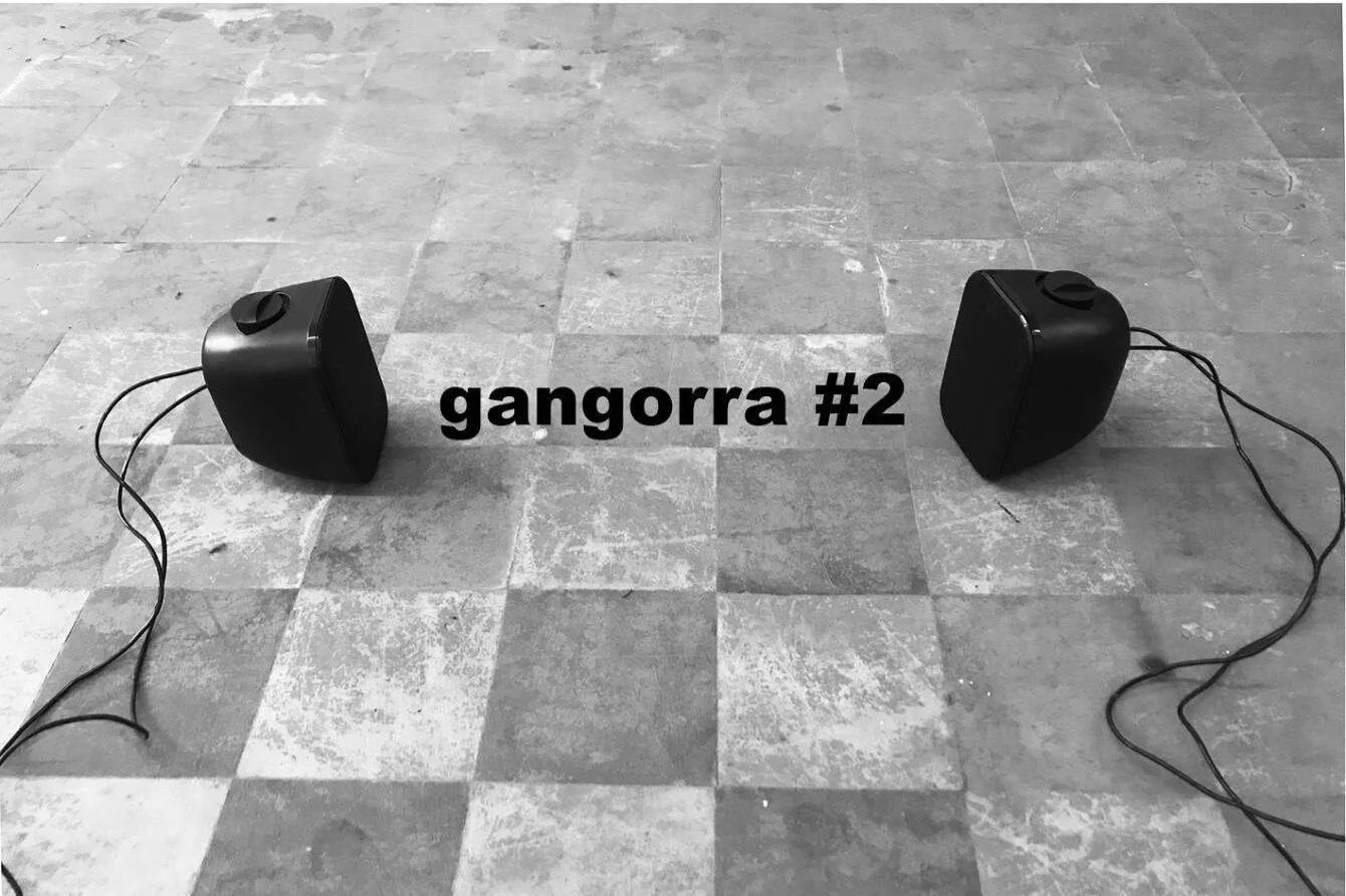 Gangorra é um trabalho - site specific- pensado a partir do diálogo remoto entre duas artistas durante o período de quarentena/ isolamento social, uma tentativa da construção de uma narrativa, de uma escrita sobre o nosso momento presente. A instalação é composta por duas caixas de som penduradas de lados opostos, uma de frente para a outra, conectadas por um cabo e dois detectores de presença. As caixas emitem sons a partir da aproximação das pessoas.