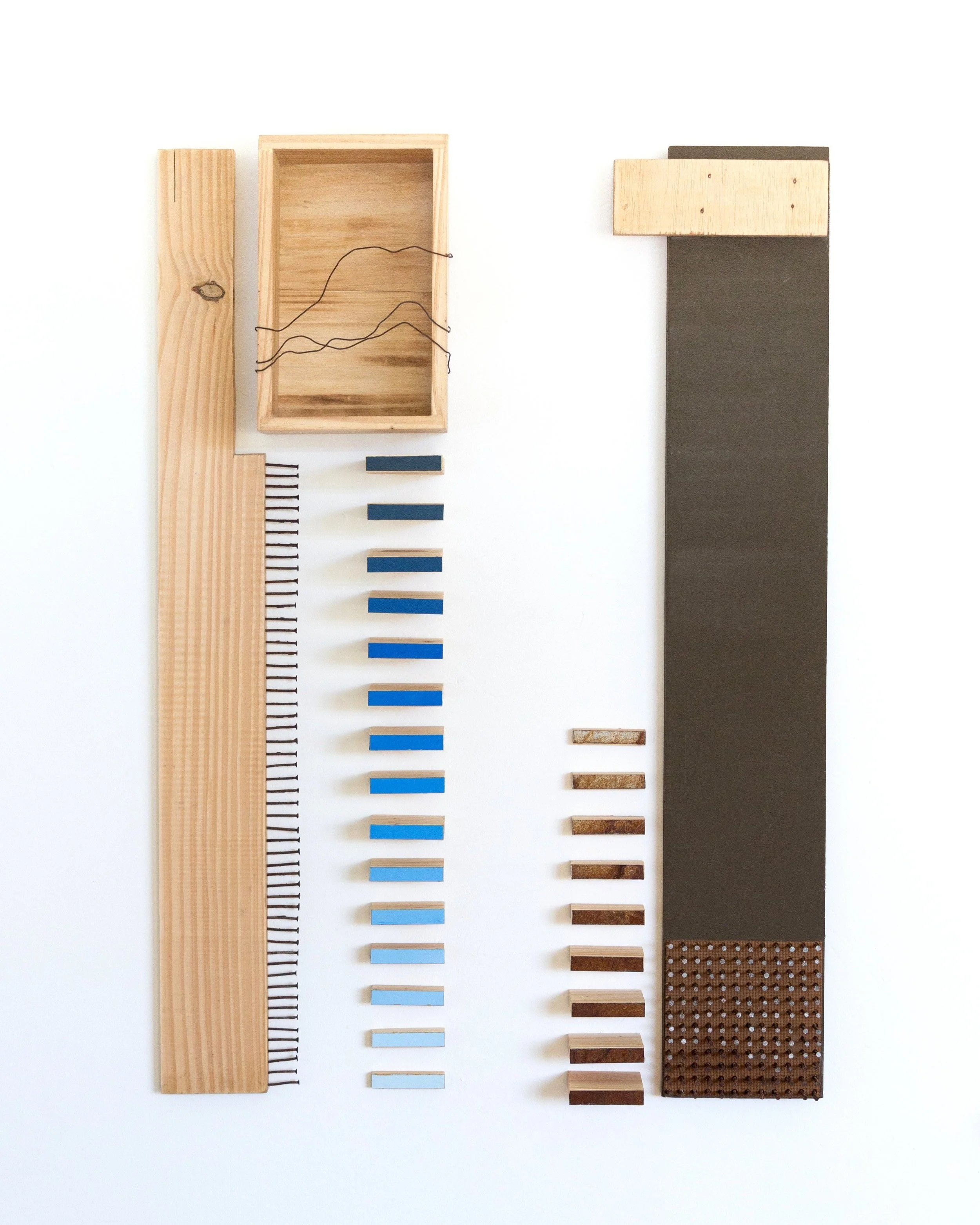 Rehearsals for a transforming landscape parte da observação e vira uma intervenção, na qual camadas são acumuladas, sobrepostas e erguidas com o apoio de grampos de construção civil e formando camadas que lembram planejamentos arquitetônicos. Fragmentos de destruição e construção dão forma à ensaios para novas paisagens.