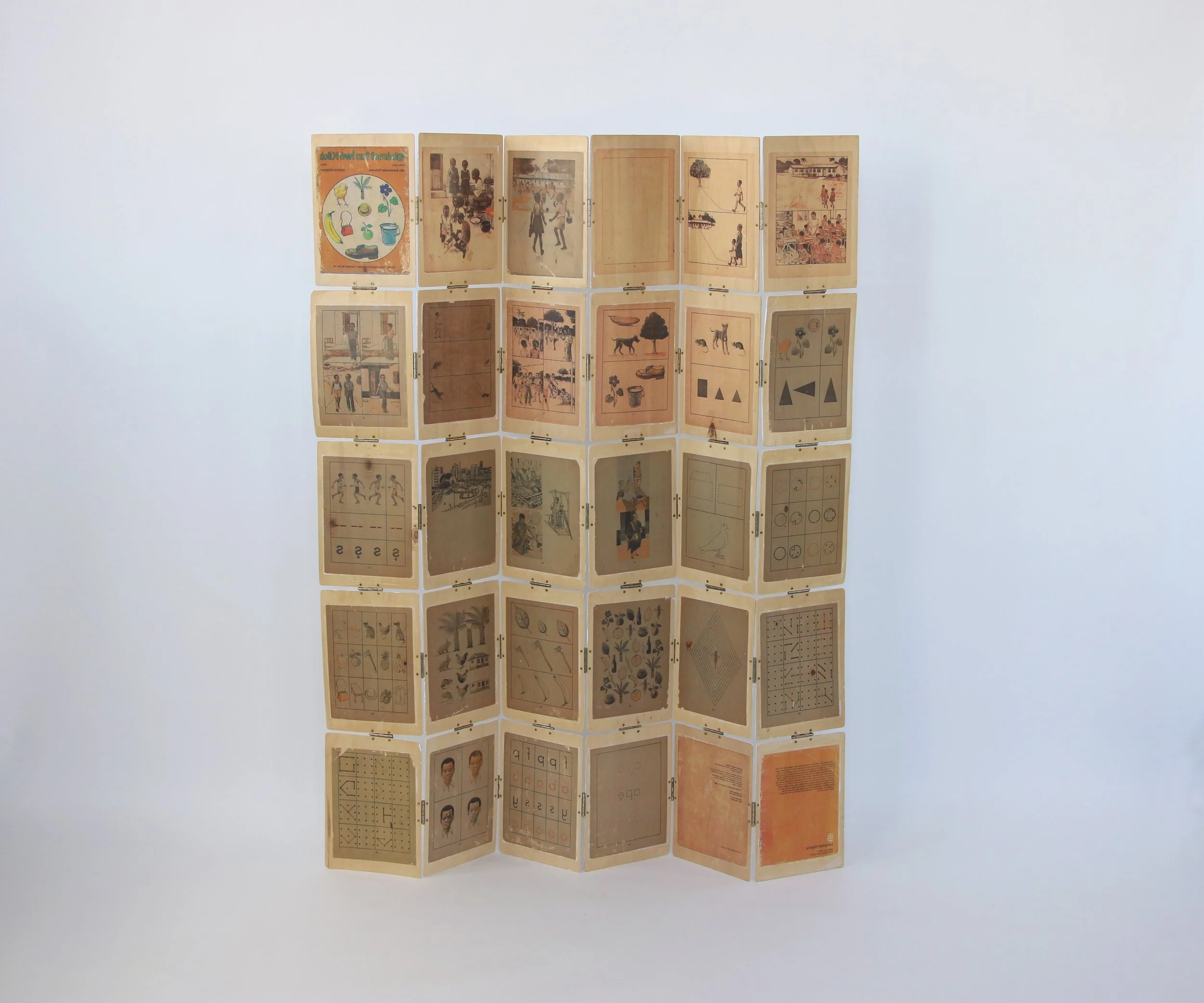 Na obra, as páginas do livro, transferidas para a madeira, renovam o tempo que este material (e suas imagens) devem durar e propõem um novo formato com o qual se relacionar com ele, onde o próprio conceito de conhecimento e de estudo pode ser repensado. As páginas se desdobram agora de uma outra forma e, do ensino que o livro propunha, se faz um monumento que se sustenta por si só.