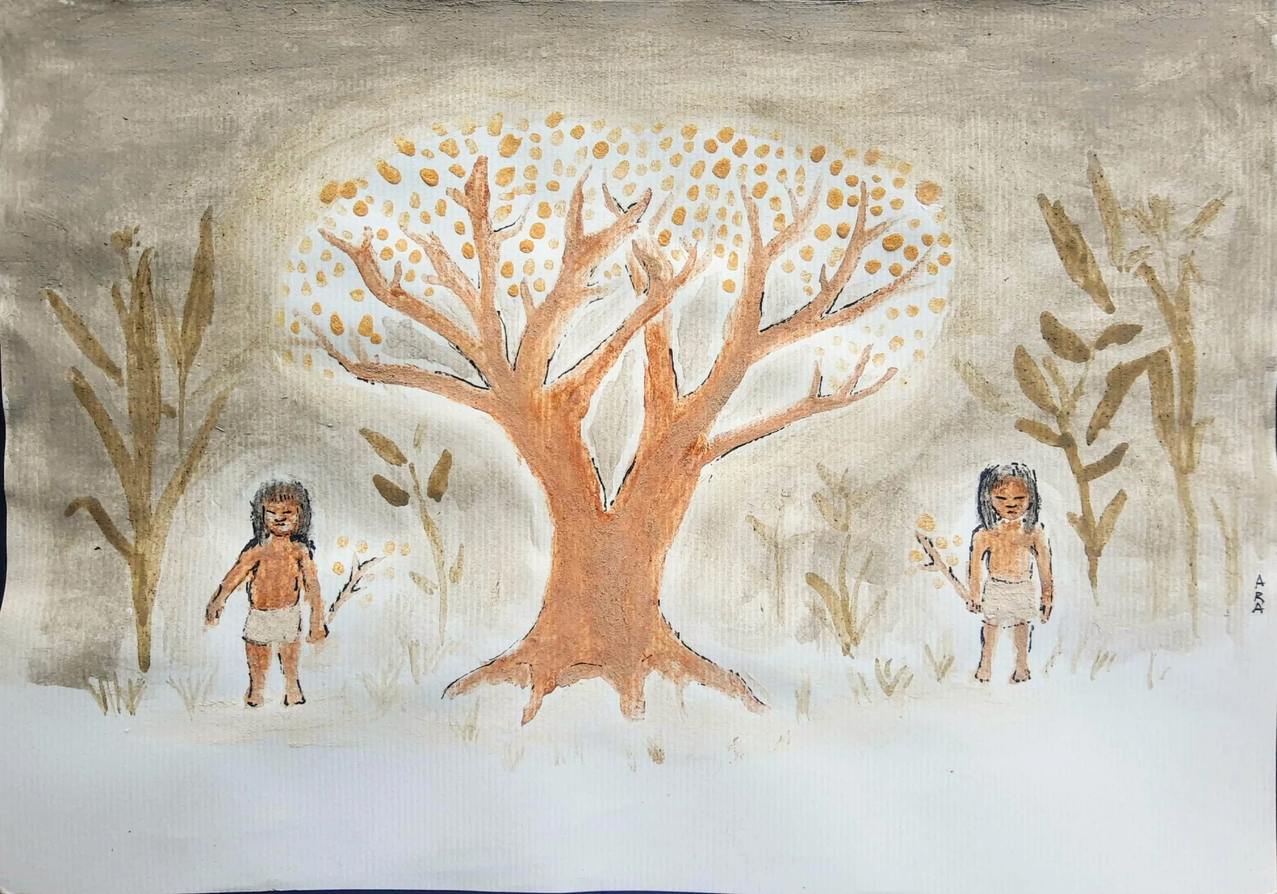 Aquarela de pigmentos naturais e caneta nanquim sobre papel vergê